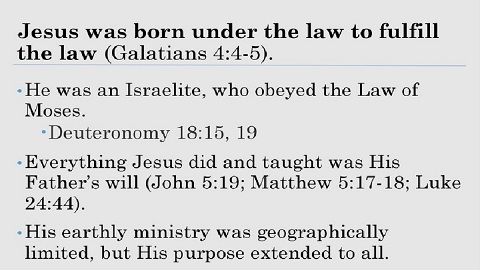 Even though Jesus came to fulfill the Old Covenant through grace, the first thirty-three years that Jesus walked the earth He lived under the Old Covenant. He was required to follow all its rules and regulations. He even taught from those rules, yet those rules are no longer intended for us. ‘But when the fullness of the time came, God sent forth His Son, born of a woman, born under the Law, so that He might redeem those who were under the Law, that we might receive the adoption as sons’. Galatians 4:4,5